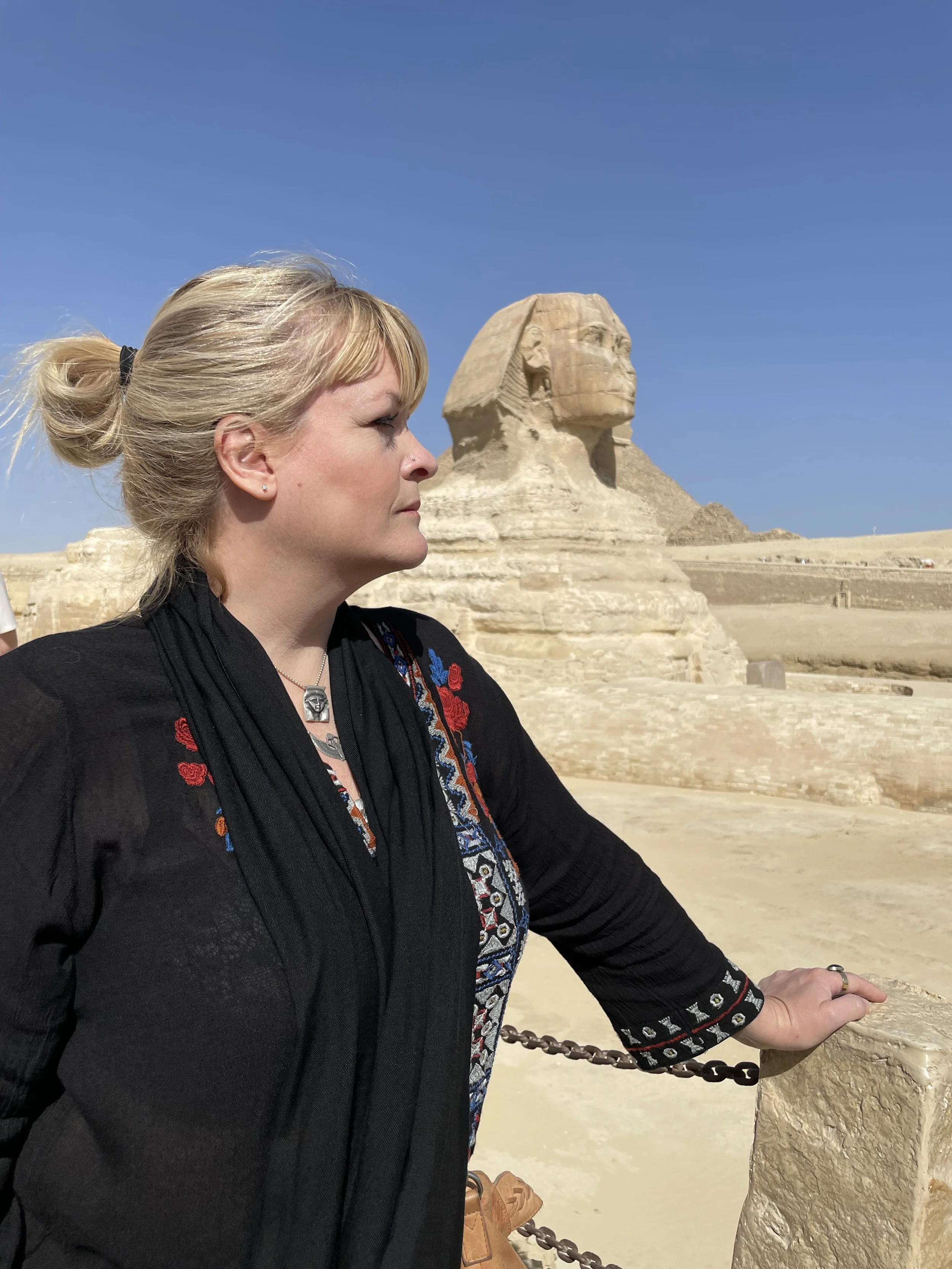 Years later, my heart is full, and my path is illuminated. I am now a Certified Ordained Priestess of Isis, Sekhmet, and Hathor through the Temple of Isis and enrolled in the Fellowship of Isis as a priestess. I am Sekhmet Reiki Master and Heryt Neter in Isis healing magic. I run my own business, Inner Goddess Apothecary, where I create ritual oils and candles honoring the Egyptian Neteru. My life has transformed in ways I never imagined, as I delved into the ancient Egyptian mysteries that resonate deeply with my spirit. I have not only dedicated myself to the service of Isis but also to Sekhmet and Hathor. My journey also took me on two sacred pilgrimages through Egypt, where I was profoundly transformed by the magic of the ancient land. A part of my heart will always be intertwined with its sacred essence.